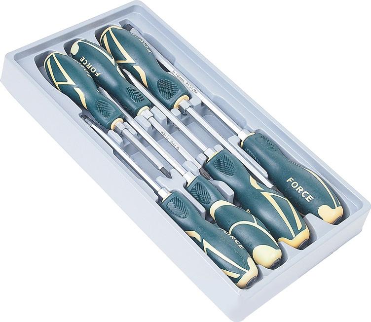 Отвертки шлицевые (SL) (4 шт): 5.5 мм L = 125 мм; 6.5 мм L = 150 мм; 8 мм L = 150 мм; 10 мм L = 200 мм; Отвертки крестовые (Philips) (3 шт): PH.1 L = 80 мм; PH.2 L = 100 мм; PH.3 L = 150 мм